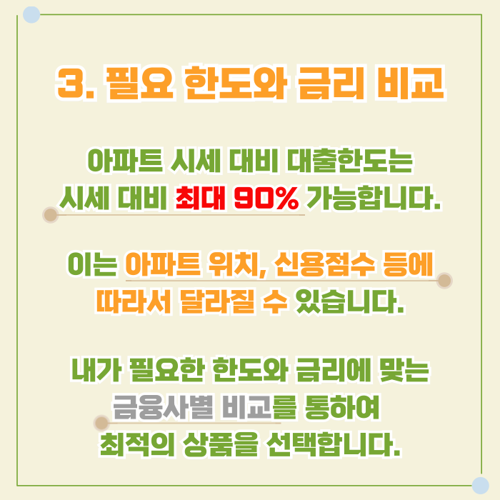 기존 대출 구조를 다시 정리해보니 시세 대비 담보 여력은 일부 남아 있었고, 추가 자금이 꼭 필요한 범위도 명확했습니다. 큰 금액을 욕심내기보다는, 상환 부담을 감당할 수 있는 수준으로 계획을 조정했습니다.