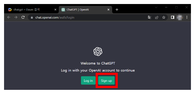 다음, 네이버, 구글등에 chatgpt / 쳇지피티를 검색하고 가장 처음 나오는 사이트 링크를 클릭하거나