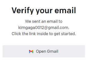 그럼 아래와 같이 Verify your email이라는 화면이 나옵니다. 이것은 이메일로 본인임을 인증하라는 뜻입니다.