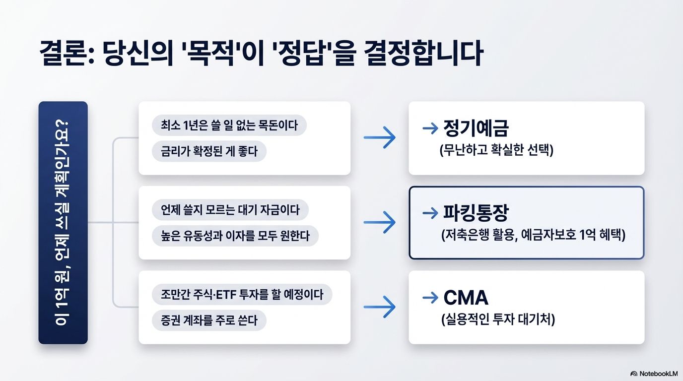 1억 원 굴리기 방법 총정리|예금·파킹통장·CMA 수익 비교